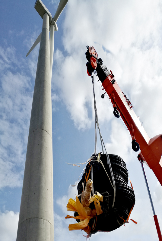 風(fēng)電是一種清潔的可再生能源,近年來世界各國均大力扶持并加快發(fā)展風(fēng)電,全球各大風(fēng)電主機(jī)廠商也在大力搶占各國優(yōu)質(zhì)風(fēng)電資源。印度班努爾風(fēng)塔體外索項(xiàng)目的成功開發(fā),為歐維姆公司拓寬海外風(fēng)電市場打下了基礎(chǔ)。下圖為風(fēng)電設(shè)備的吊裝。